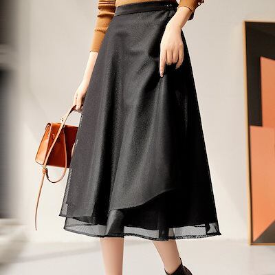 2024 人气 秋 新作 ロングスカート 春と秋 メッシュ ミドル丈スカート イレギュラー 薄手 半身スカート Aラインスカート 韓国ファッション