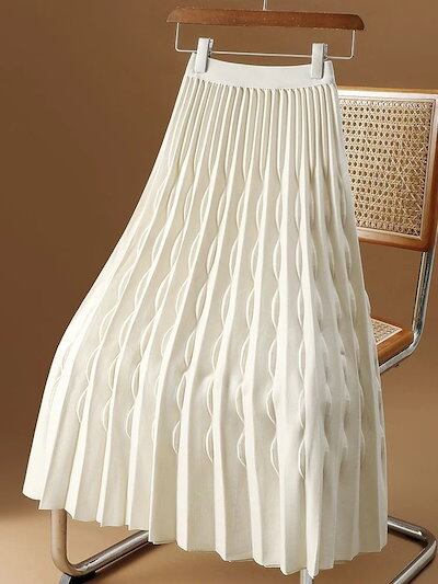 2024 人气 秋 新作 ロングスカート アプリコット プリーツスカート 半そでスカート レディース 秋冬 新しいスタイル ウェーブプリーツ 大きな裾 ロングスカート 韓国ファッション