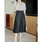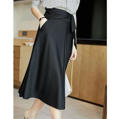 2024 人气 秋 新作 ロングスカート ブラック スリム ミディアム丈 半そでスカート 秋 新スタイル テンパメント 膝丈 スカート 韓国ファッション