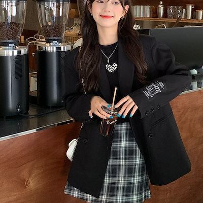 2024 人気 秋 ジャケット人気アウター スーツ 秋 新作 韓国ファッション ブラック 着痩せ トップス