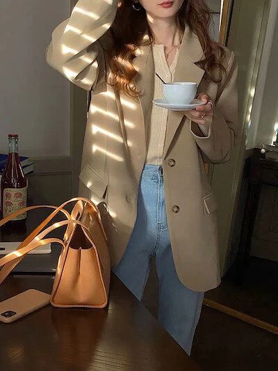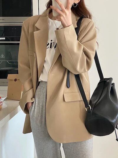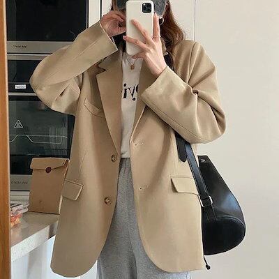 2024 人気 秋 ジャケットスモールブレザーレディース 秋の新作韓国版ゆったりカジュアル着やせ気質デザインカーキスーツ