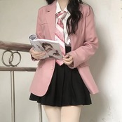 2024 人気 秋 ジャケットピンクのブレザー女性春秋ゆったり純欲風韓国版ゆったり気質学生ブレザーファッション