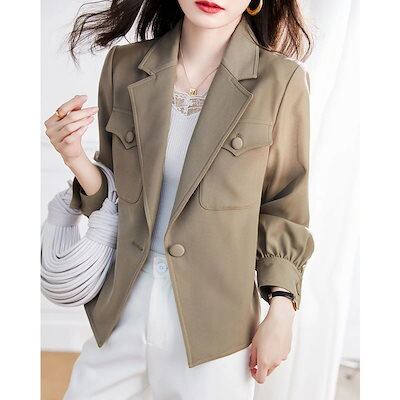 2024 人気 秋 カジュアル長袖ジャケット女性 スーツトップスジャケットショートウィンドブレーカー
