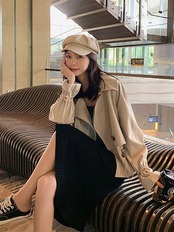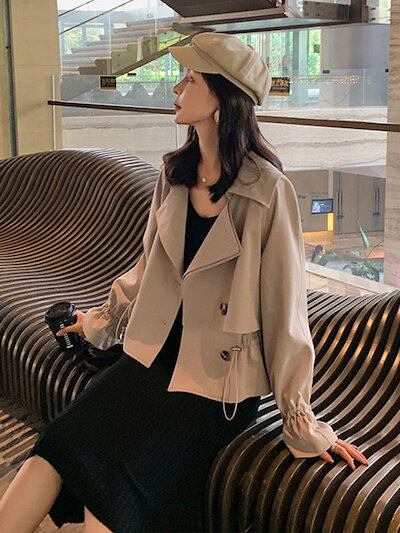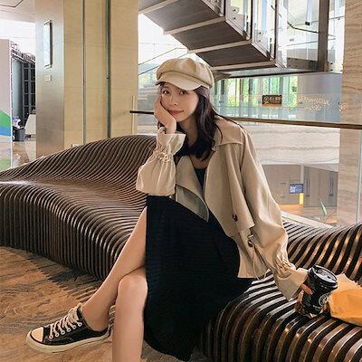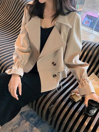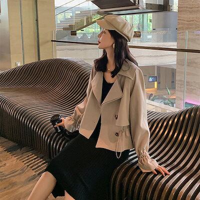 2024 人気 秋 トレンチコート スーツの襟 ジャケット レディース ゆったり ジャケット ショート トレンチコート