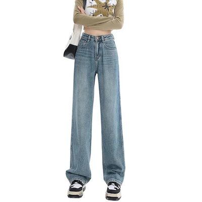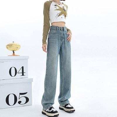 デニムボトムス ニューデザイン ストレートパンツ レディース 脚長効果春秋 ハイウェスト 体型カバー ファッション モップパンツ ワイドパンツ ジョガーパンツ 体型カバー