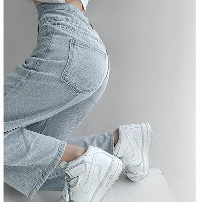 ハイウェスト ドレープ感 カーディガン ゆったり ストレート モップパンツ 脚長効果 モップパンツ デニムパンツ レディース服 ロングパンツ 美脚 長ズボン