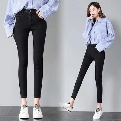 パンツ デニムパンツデザイン感ファッション春ズボンスキニーハイウエスト 脚長効果 ロングパンツ/9分丈/8分丈選べるタイトパンツワイドパンツジーンズ カジュアルストレッチ效果