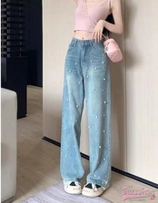 2024 春夏 パンツ デニム ジーンズ スキニー レッグ 脚長効果 ハイウエスト 美脚効果 細見え 春 水色 ライトブルー ストリート系 カジュアル ズボンファッション デザインお出かけ
