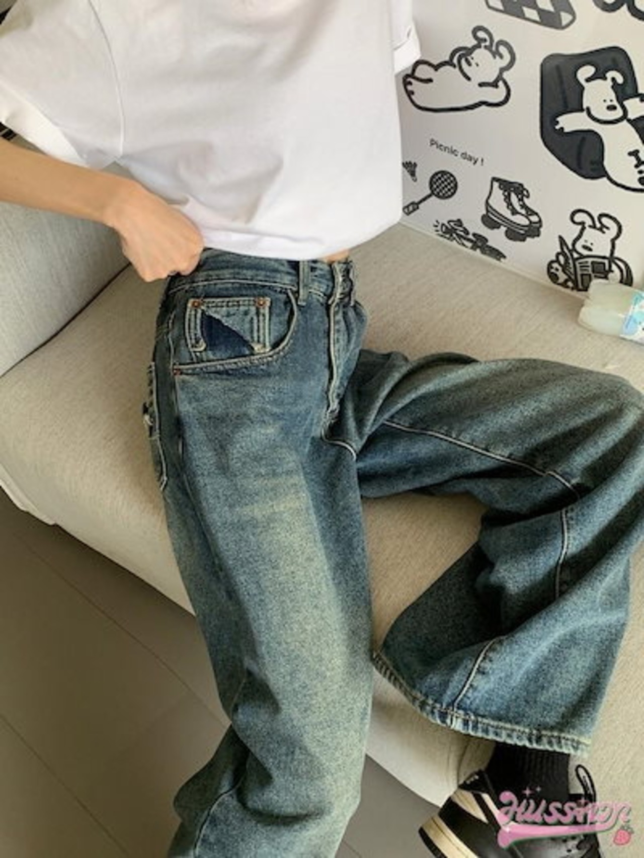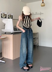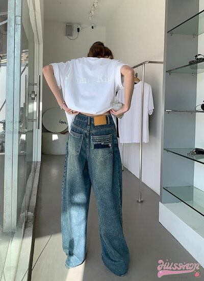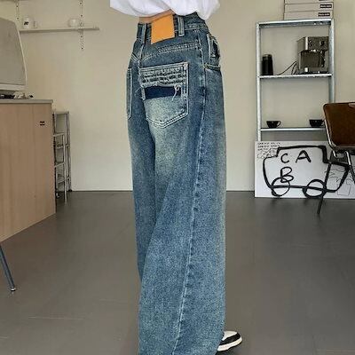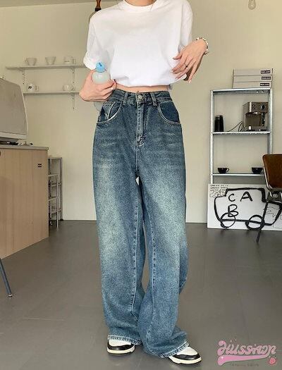 パンツ デニム ジーンズ ワイド ストレート ハイウエスト 美脚効果 細見え 春 カジュアル 脚長効果 韓国ファッション レディース お出かけ