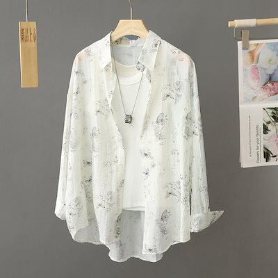 日焼け止め服 シャツ レディース ジャケット 2024 夏 ルーズ 薄い部分 チュール カーディガントップス