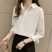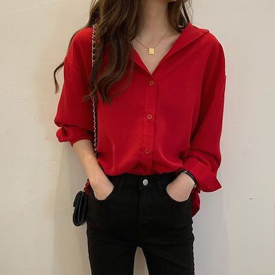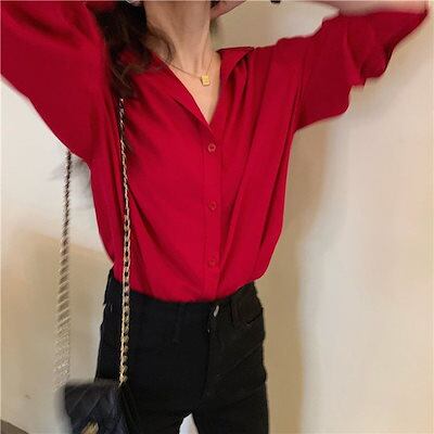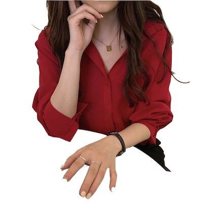 シフォンシャツ 女性2024 春と秋 新作 ゆったり 無地 百花繚乱 ブラウス