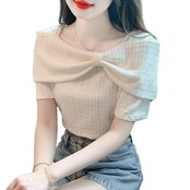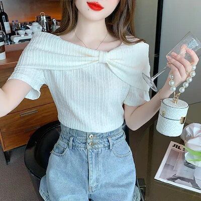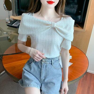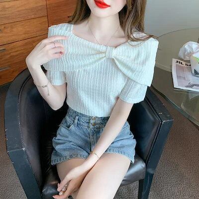 蝶ネクタイ ワンショルダー 半袖 夏 2024 新しいスタイル デザイン