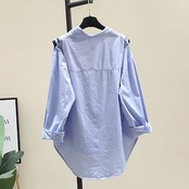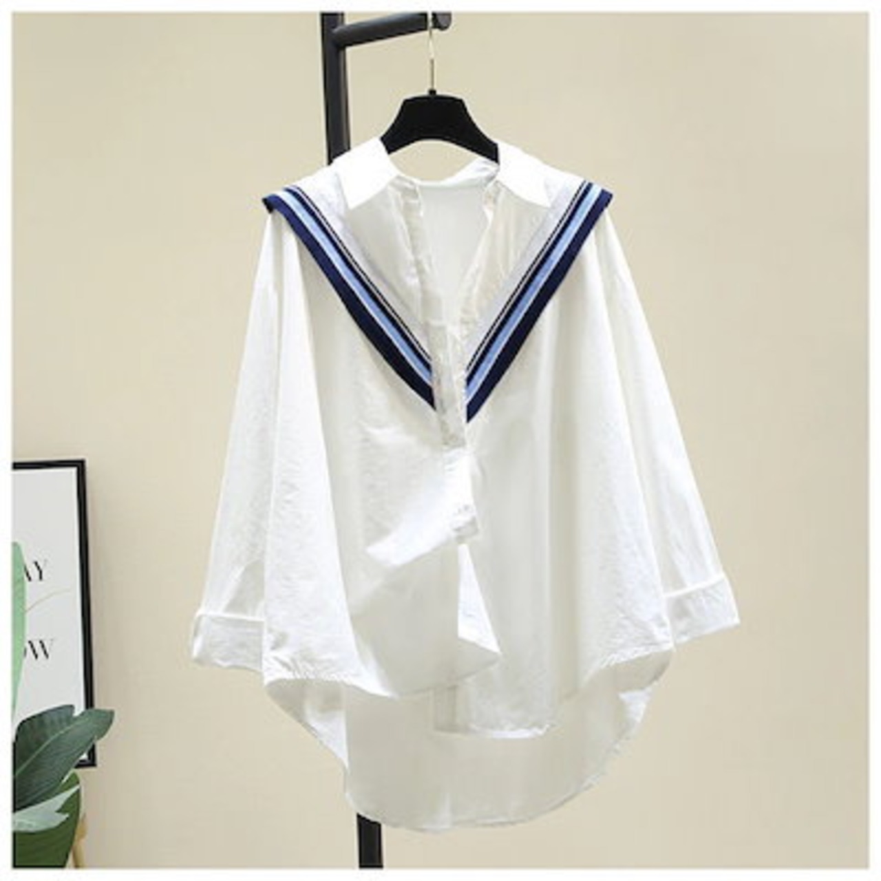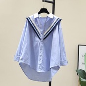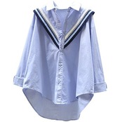 ブラウス シャツ レディース シアーシャツ 着痩せ レイヤード ブルーコットン 長袖 シャツ レディース 新作 韓国版ゆったりシャツカジュアルキルティングボーダーニットトップスボトム