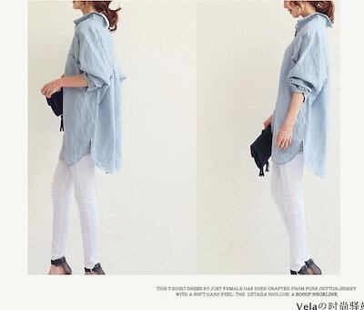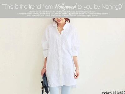 シアーシャツ綿麻 トップス シャツ ゆったり ワンピーっす着痩せ 韓国ファッション ロング丈ブラウス シャツ レディース