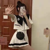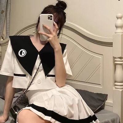 制服 2024 新入荷 JK 2点セット シャツ+スカート 可愛い 制服スカート スクールベスト 着痩せ セーラー服 無地 プリーツスカートサンタコスプレ
