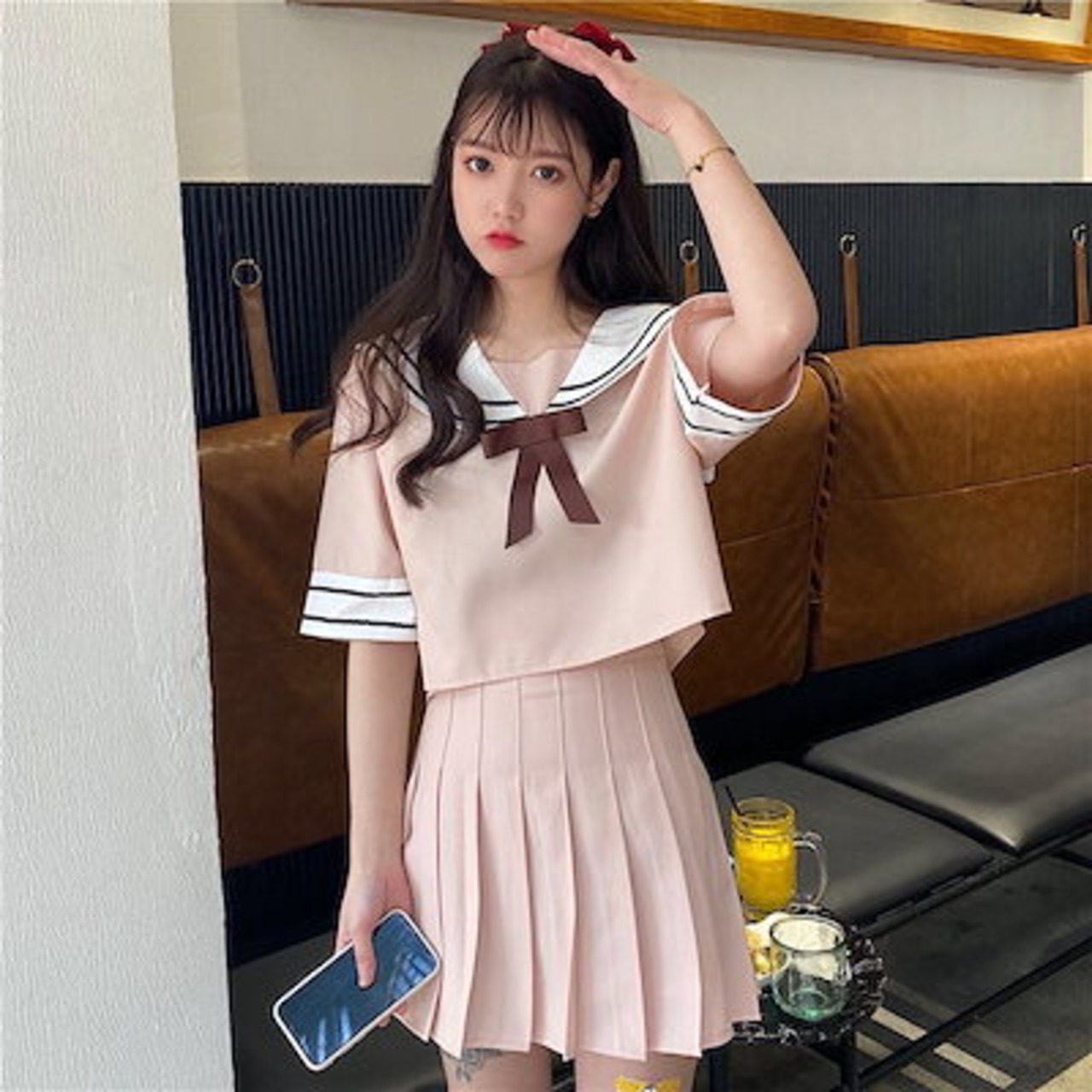 制服 2024 新入荷 JK 2点セット シャツ+スカート 可愛い 制服スカート スクールベスト 着痩せ ピンクセーラー服 プリーツスカートサンタコスプレ