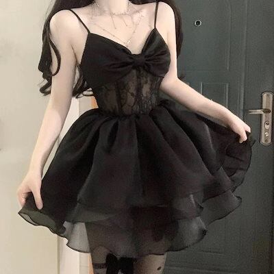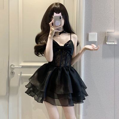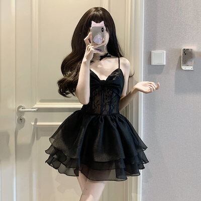 ロリータ コスプレ 2024新作 夏 ロリータ ワンピース jsk ブラック 着痩せ キャミソール ワンピースサンタコスプレ