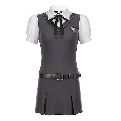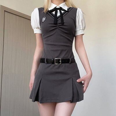 ロリータ 2024 新作 可愛い レディース 制服 蝶結び フェイクレイヤード 着痩せ シャツ ワンピース 3点セットサンタコスプレ