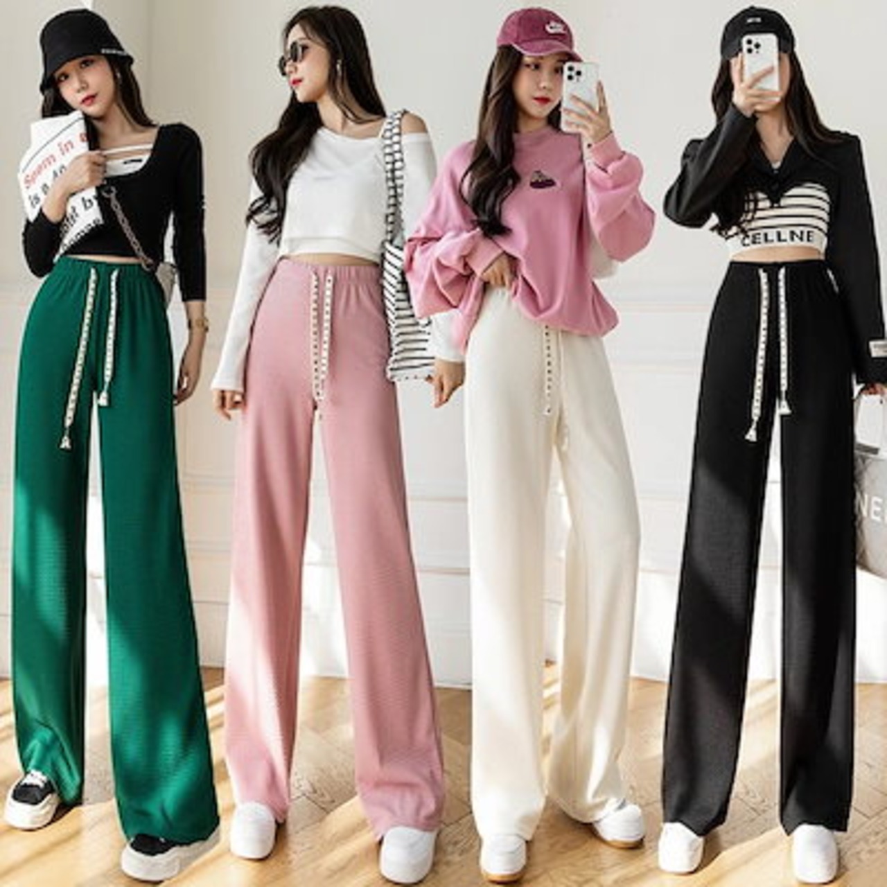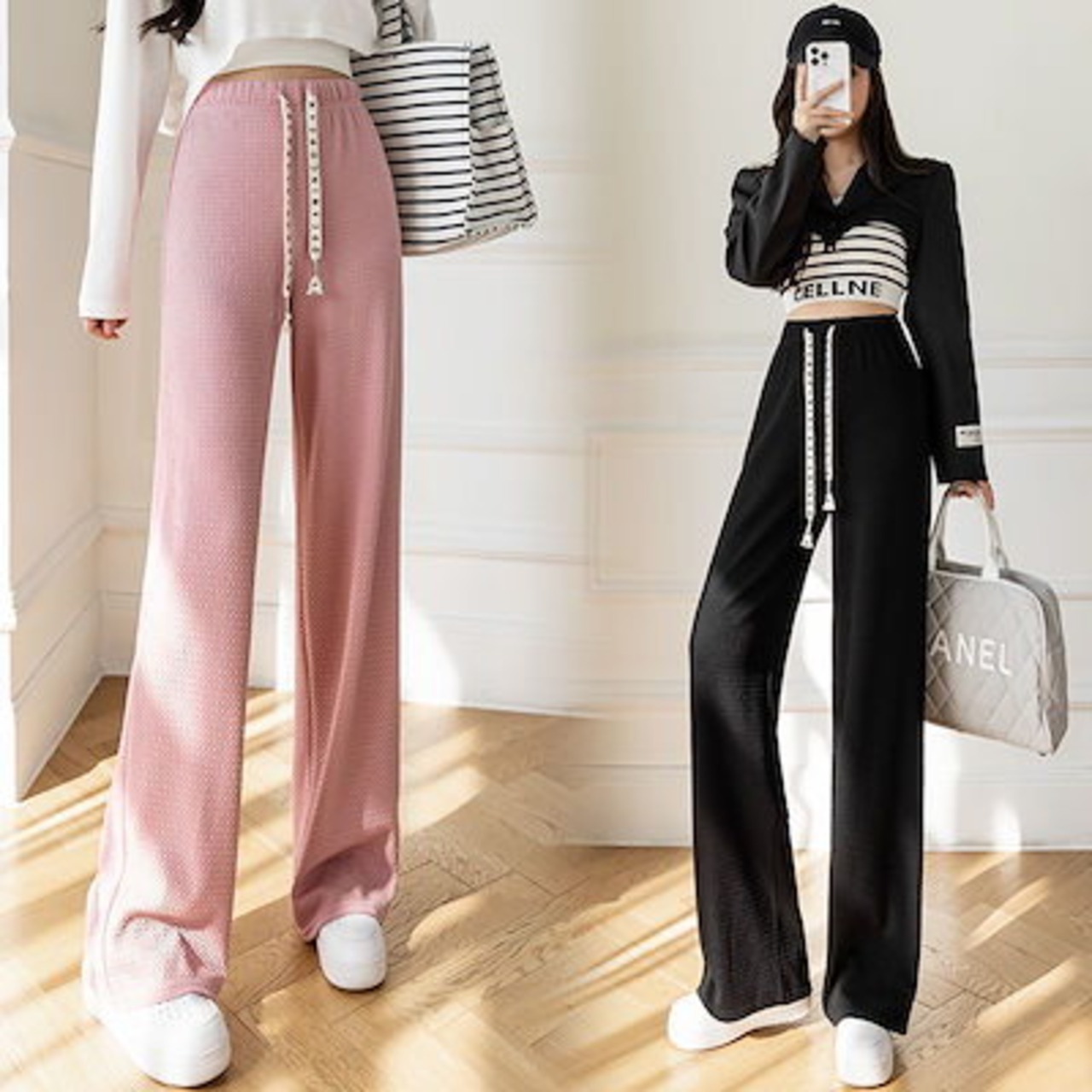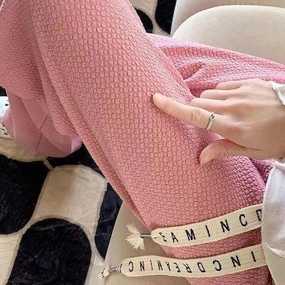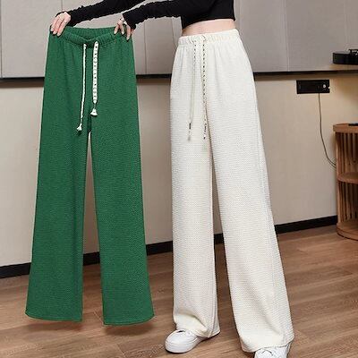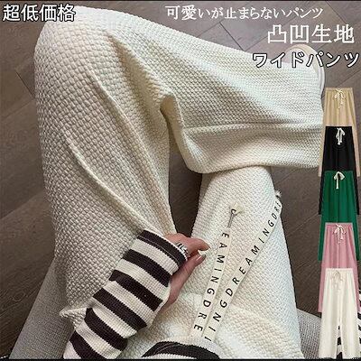 レディース パンツ エンボス加工 ワイドパンツ 無地 ストレートパンツ 楽ちん ウエストゴム 春夏