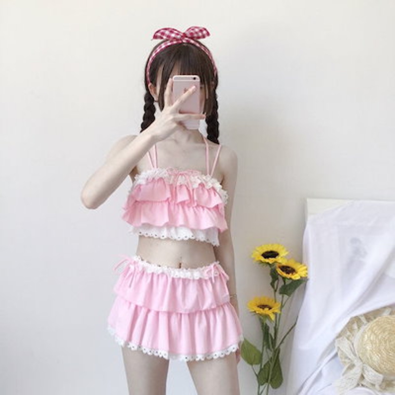 水着?セットア水着 レディース パッド付き 体型カバー 2点セット可愛いビキニ 体型カバーカップ付きイン 水着