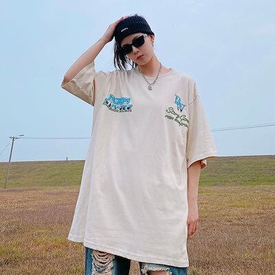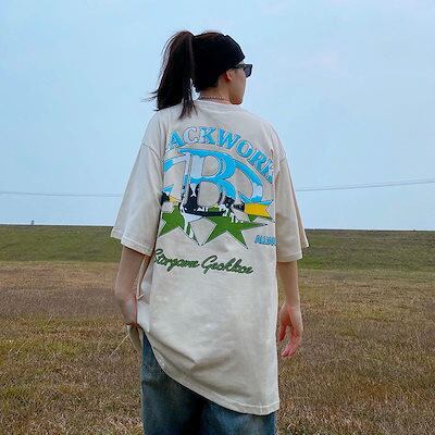 3カラー Tシャツ 半袖 ロンT ゆったり プリント 綿 着痩せ 快適 大きいサイズ トップス ラウンドネック カットソー メンズ レディース カップル 春夏 ダンス カジュアル ファッション