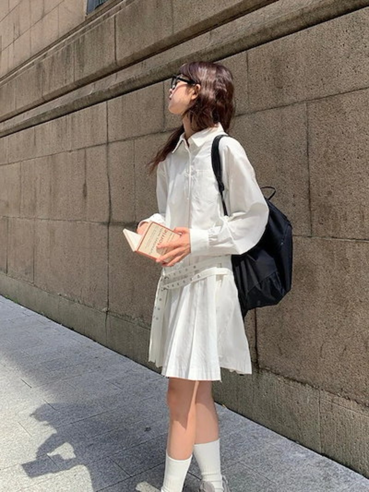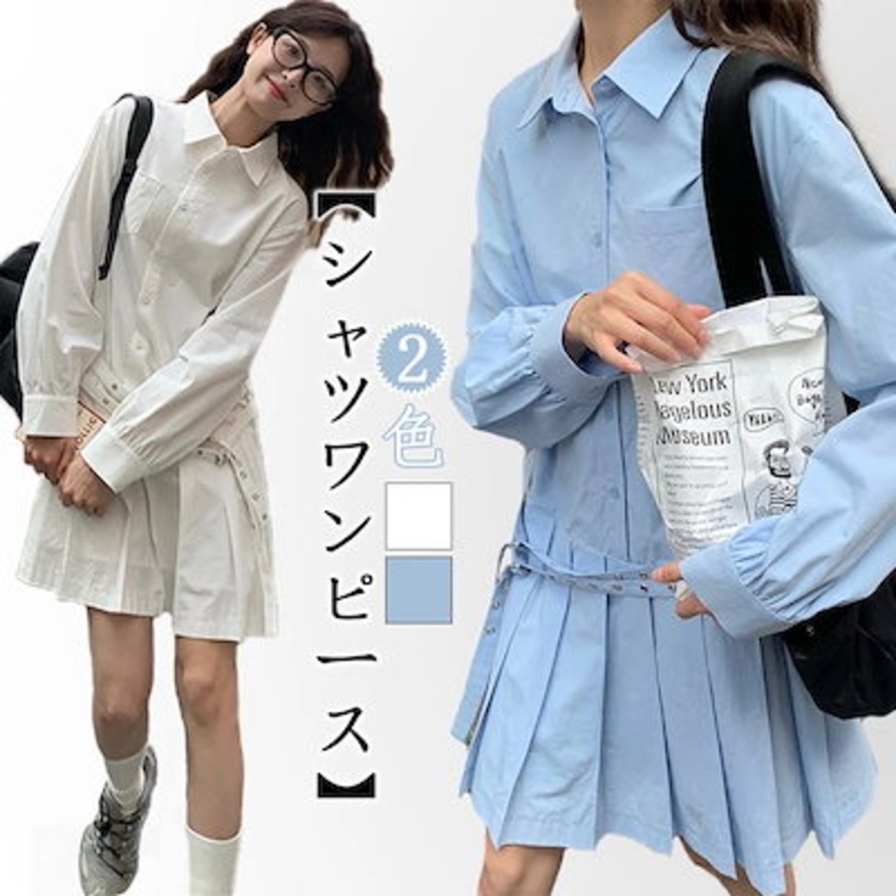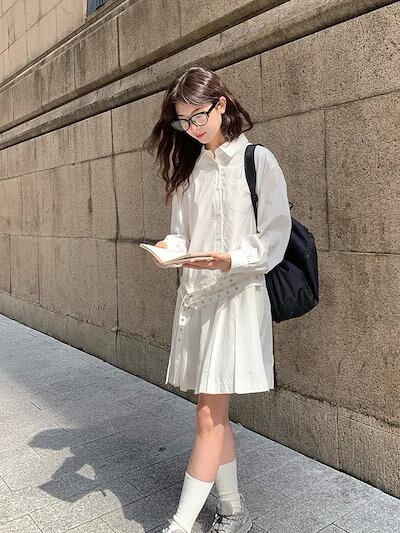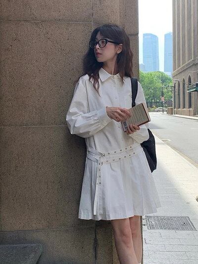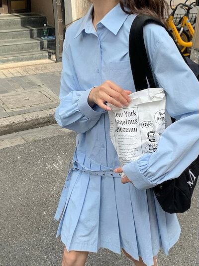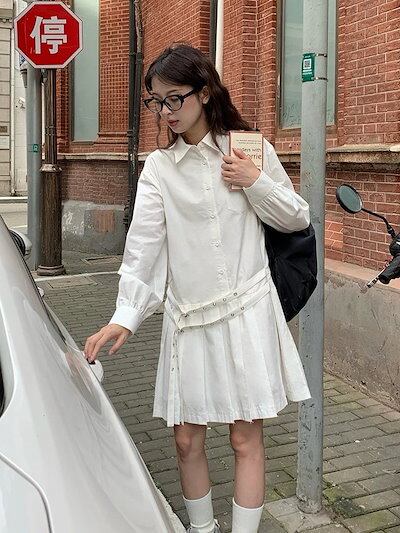 韓国ファッション ベルト 装飾 レイヤードワンピース 春秋 新作 レディース 小柄 シャツワンピース