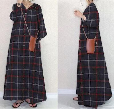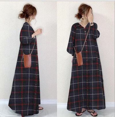 【2枚購入で 2oo円OFF! 】初秋 シャツワンピース 冬の インナー Vネック 長袖 おしゃれ 百掛け ワンピース チュ 総丈 レディース 綿麻 シャツワンピース ゆったり