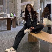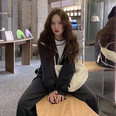 春秋 スウェット+ズボン 2点セット フード付きアウターワイドパンツ セットアップ