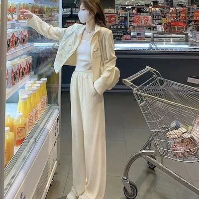 アウター+ズボン 2点セットレディース 春秋 カジュアル スウェット ワイドパンツ 通勤 韓国ファッション セットアップ