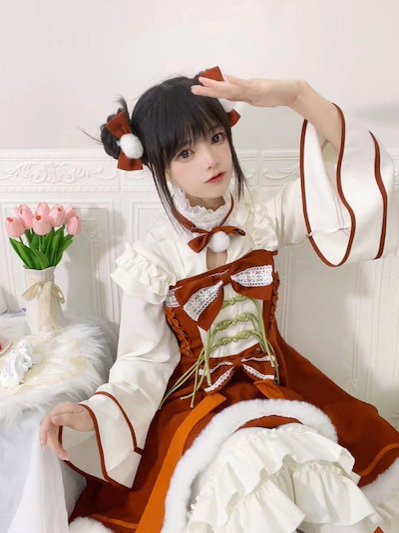 タコスプレ チャイナ風 漢要素冬にロングドレス 成人式 ワンピース秋冬 チャイナドレスを改良した新年服壱軟鯉新年服の少女 韓国ファッション