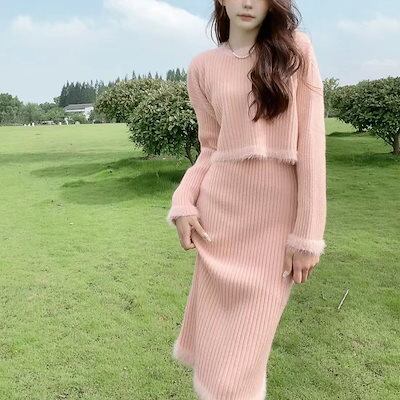 秋冬韓国ファッション 秋冬セーターセット厚手保温アップセーターカーディガンスカート気質スカート冬ウォームツイストニット