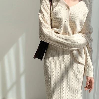 初秋セーターセットアップセーターカーディガンスカート秋冬韓国ファッション気質ウォームツイストニット