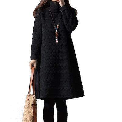 4colors 秋冬ワンピース着痩せビッグサイズでゆったり厚手の長袖ワンピース冬のワンピース