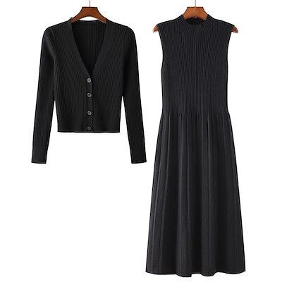 [2点セット]ロングワンピース ワンピース 秋冬 ニットワンピース スリミング 気質 着痩せ おしゃれ 長袖 ニットワンピ