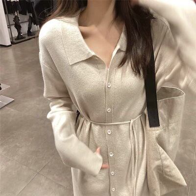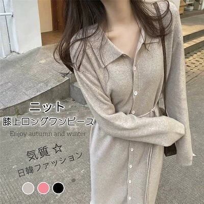 秋冬 ワンピース 日韓ファッション長袖ニットワンピース優しい /気質 ロングワンピース 秋冬 ゆったり快適百掛け セーターワンピース レディース母の日