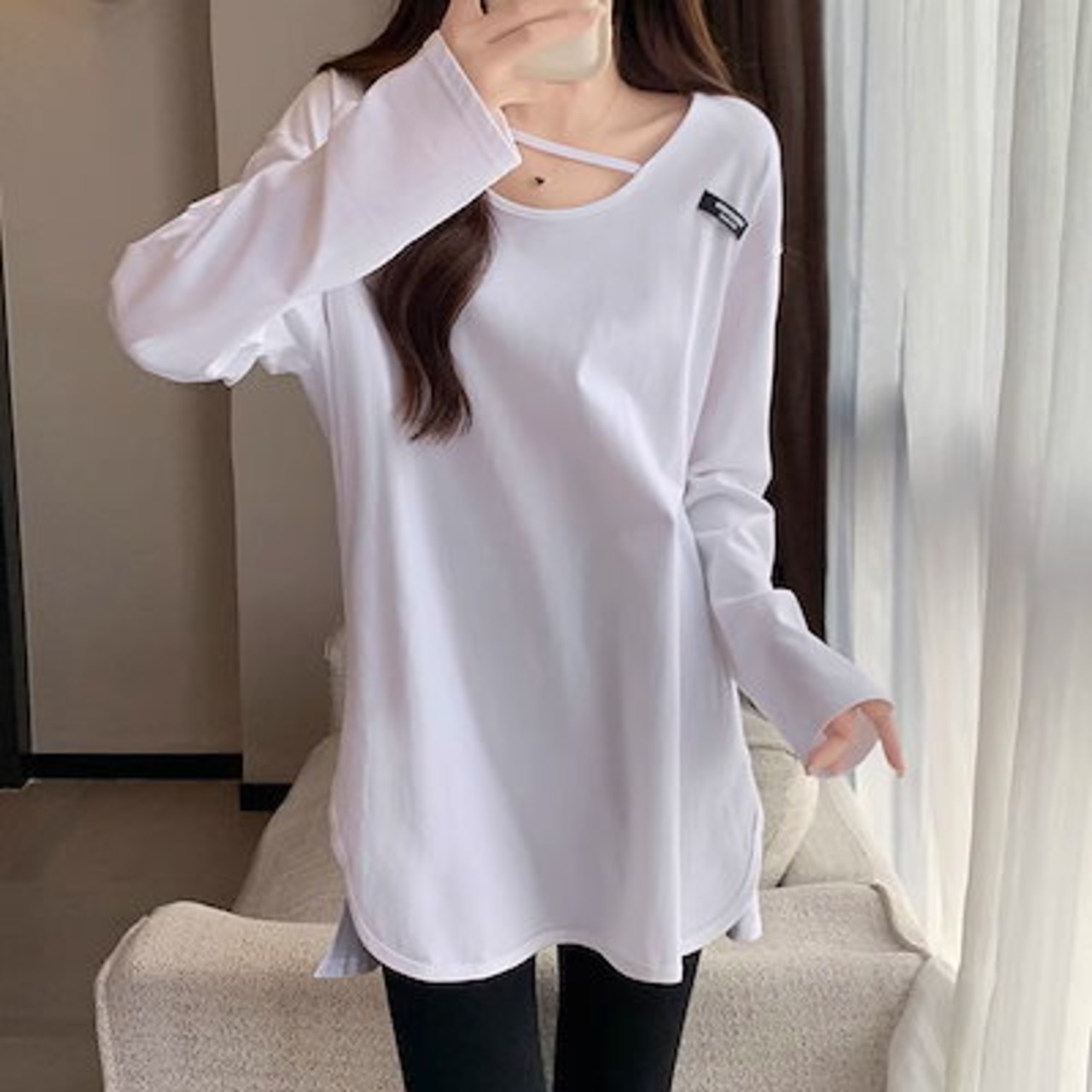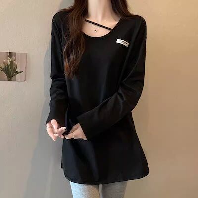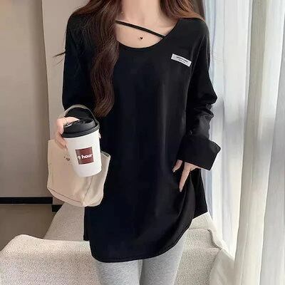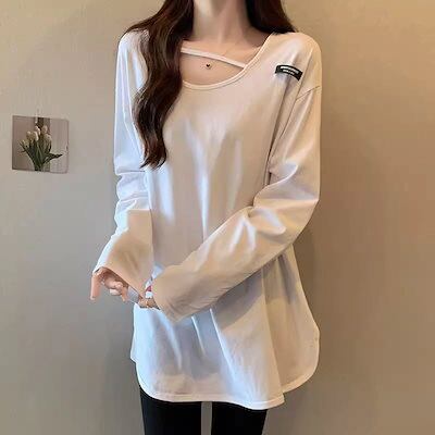 秋 冬 長袖 Tシャツ レディース ゆったり スリット トップス カジュアル