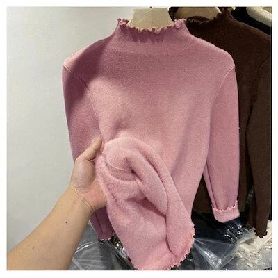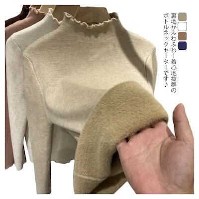 【2枚購入で 2oo円OFF!】秋 冬 裏起毛 ニットセーター保温 暖かい 上質 リブ ニット トップス レディース タイト シルエット ストレッチ カットソー 無地 秋冬 トップス