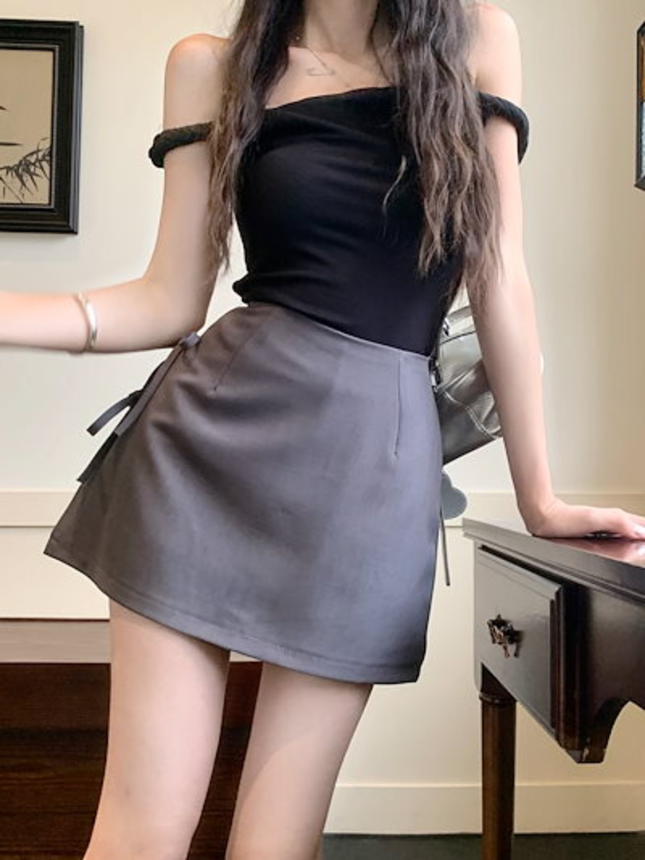 2024秋冬 スカート ミニ丈 ハイウエスト 脚長効果 美脚効果 細見え かわいい風 おしゃれ キュート フレンチ 甘め カジュアル 春 黒 白 韓国系ファッション レディース お出かけ