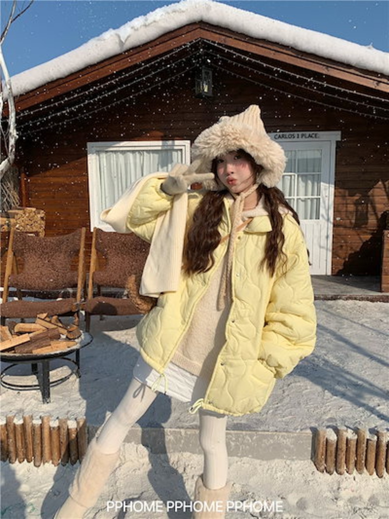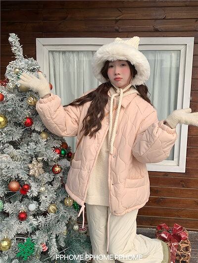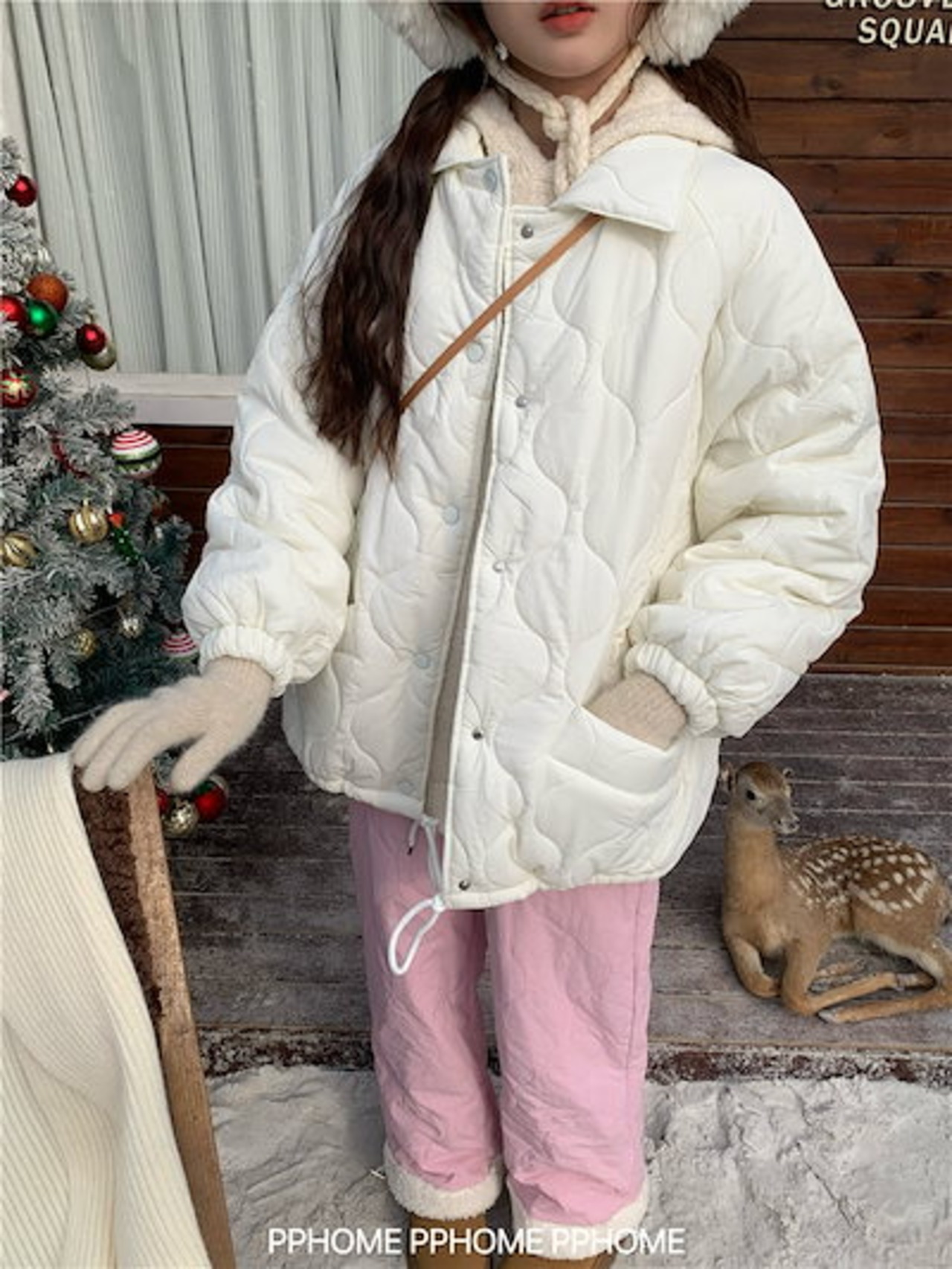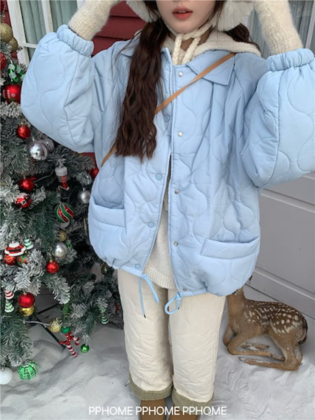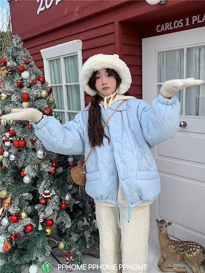 ふっくら中綿 あたたかい 冬 防寒あったかショート暖かいかわいい ブルゾン厚手アウターブルーBF風 無地羽織るファッションフリース大人ゆったりカジュアルストリートネックにサイズゆるダボシルエット秋黑白