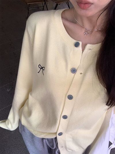 2024秋冬トップス カーディガン 羽織り 長袖 ボタン ラウンドネック 秋 黄色 緑 白 黒 青 おしゃれ かわいい 韓国ファッション レディース お出かけ