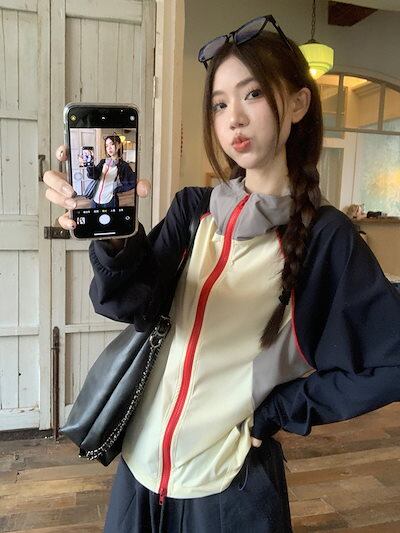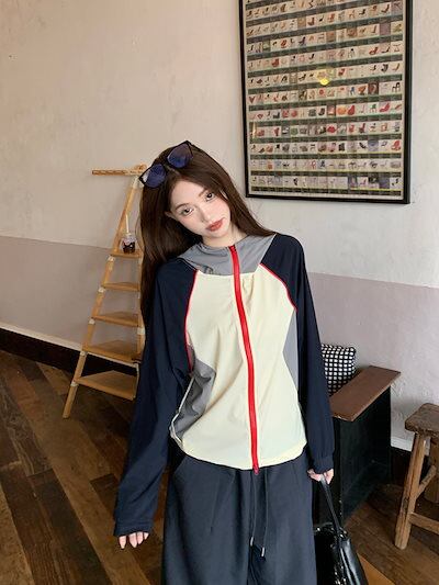 2024秋冬アウター パーカー ジップ チャック フード付き コントラスト 秋 おしゃれ かわいい 韓国ファッション レディース お出かけ