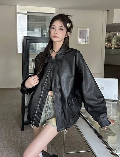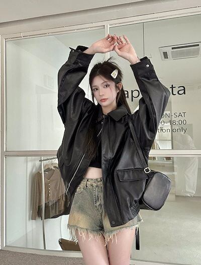 2024 春夏 長袖 かわいい ショート アウター ブラック 羽織り合成バイカラーカジュアル きれいめ 女っぽ きれいめ ファッション 色っぽ 女っぽカジュアルきれいめ大人