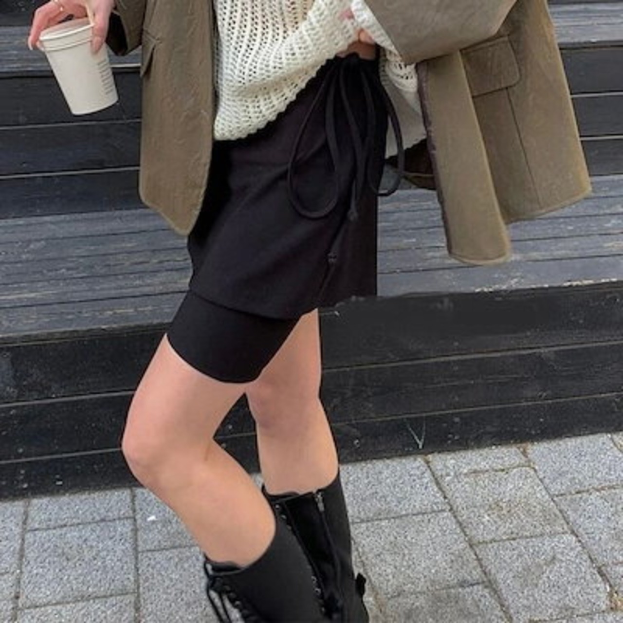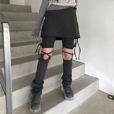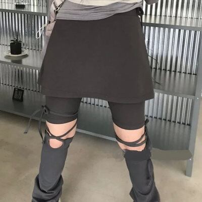 2024 春秋 ワイド 韓国ストリート ミニ スカートハーフパンツ ハイウエスト k-POP 2点セット 美脚効果 脚長効果 細見え かわいいゆったりルーズカジュアルファッション系レディースお出かけ