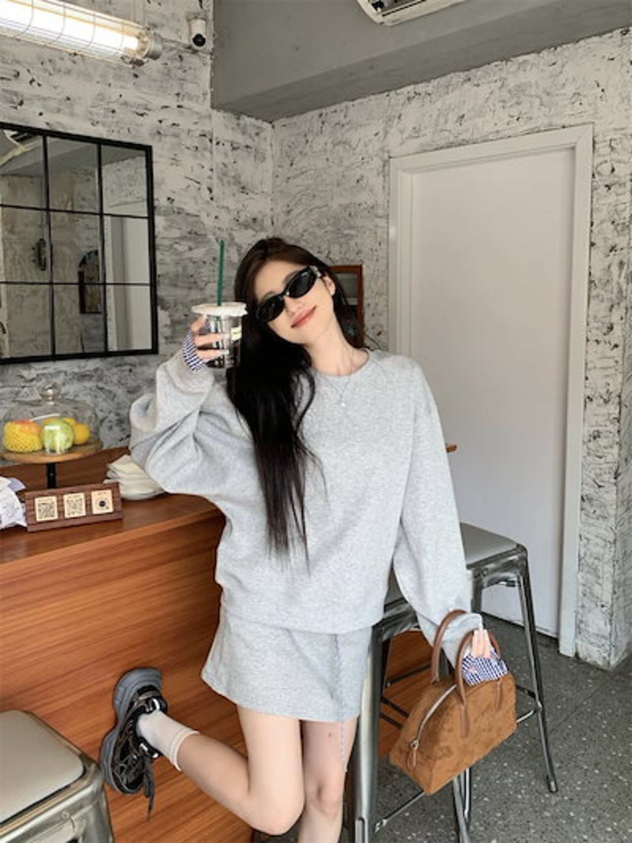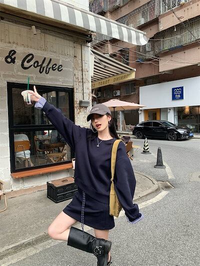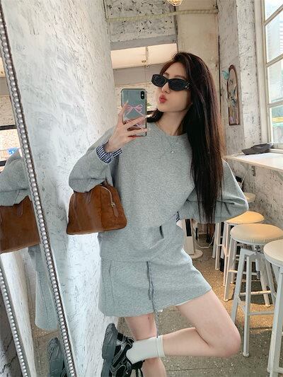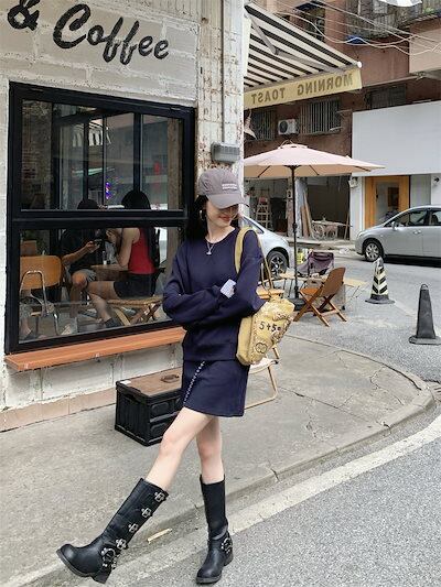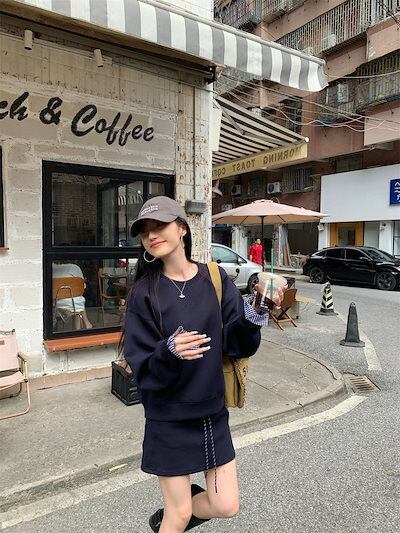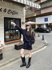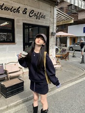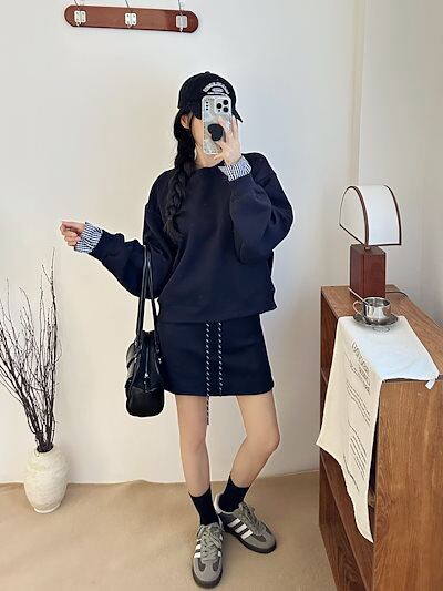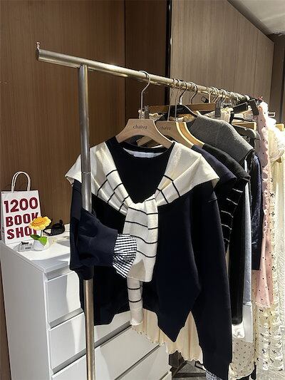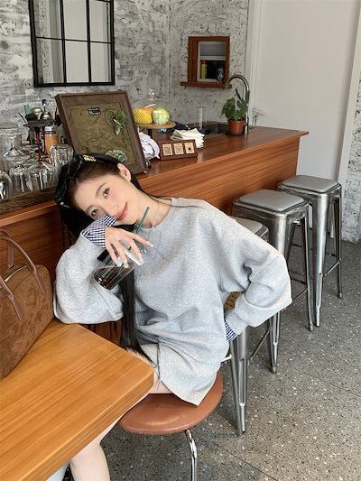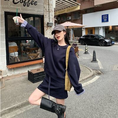 2024秋冬フェイクツーピーストップス レイヤード風 ラウンドネック 長袖 ゆったり 秋コーデ 黑 おしゃれ かわいい ラブリー キュート 韓国ファッション オフ レディース お出かけ 2点
