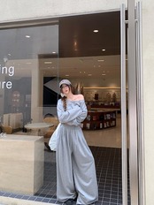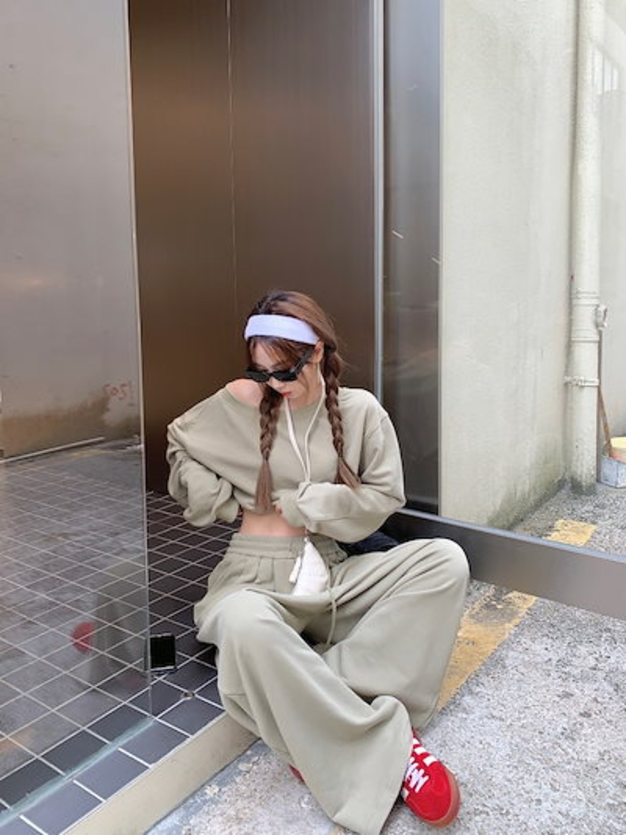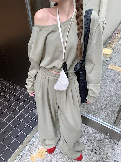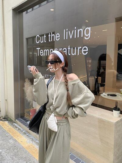 2024 秋冬 トップス 長袖トレーナーかわいいラウンドネックTシャツ肌見せレディース ストレート 韓国風ルーズゆったりカジュアル おしゃれサイズ シルエットファッション系コーデ衣装丈上下セットアップ