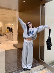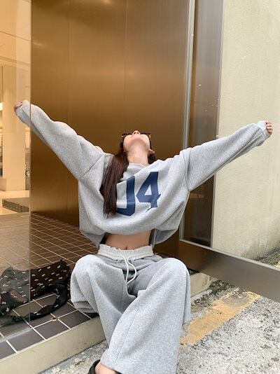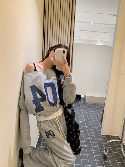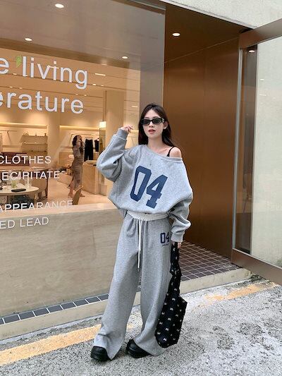 2024 秋冬 トップス 長袖トレーナーかわいいラウンドネックTシャツ肌見せレディース ストレート 韓国風ルーズゆったりカジュアル おしゃれサイズ シルエットファッション系コーデ衣装上下セットアップ
