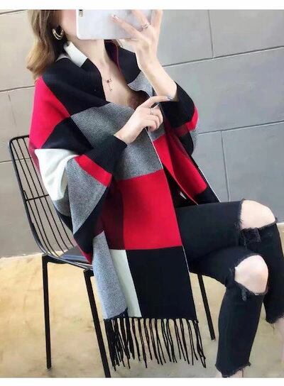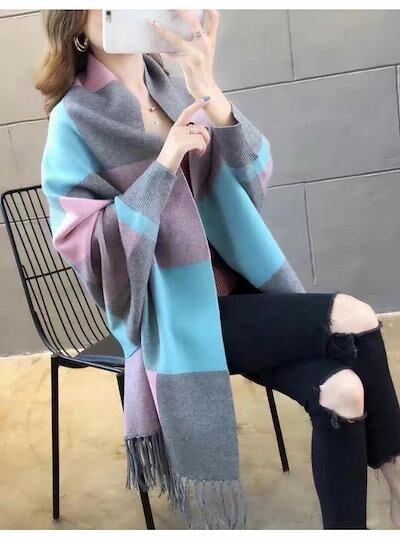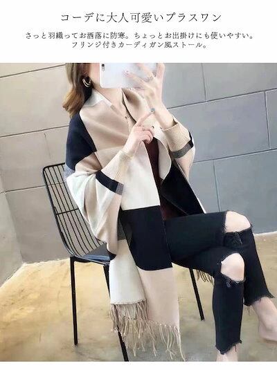 チェック ストール 大判ストール 暖か 総柄 (メール) フリンジ付ストール 秋冬 羽織 レディース おうち時間 レディース カーディガン 選べる4Type ニット