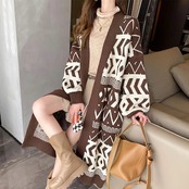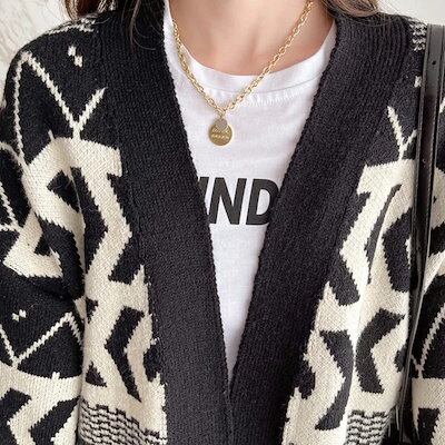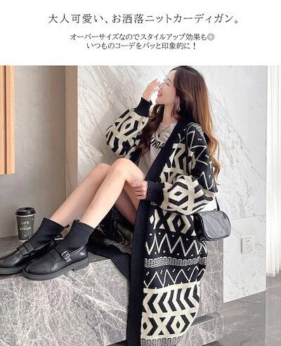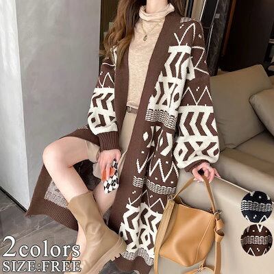 ボリューム カーディガン アウター ロング 秋 幾何学柄 カジュアル カーデ 大人可愛い 冬 レディース ニット 羽織り 長袖 トップス トレンド