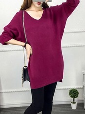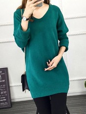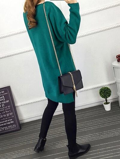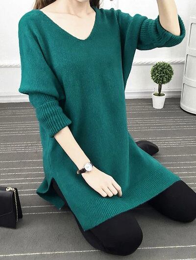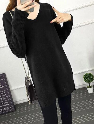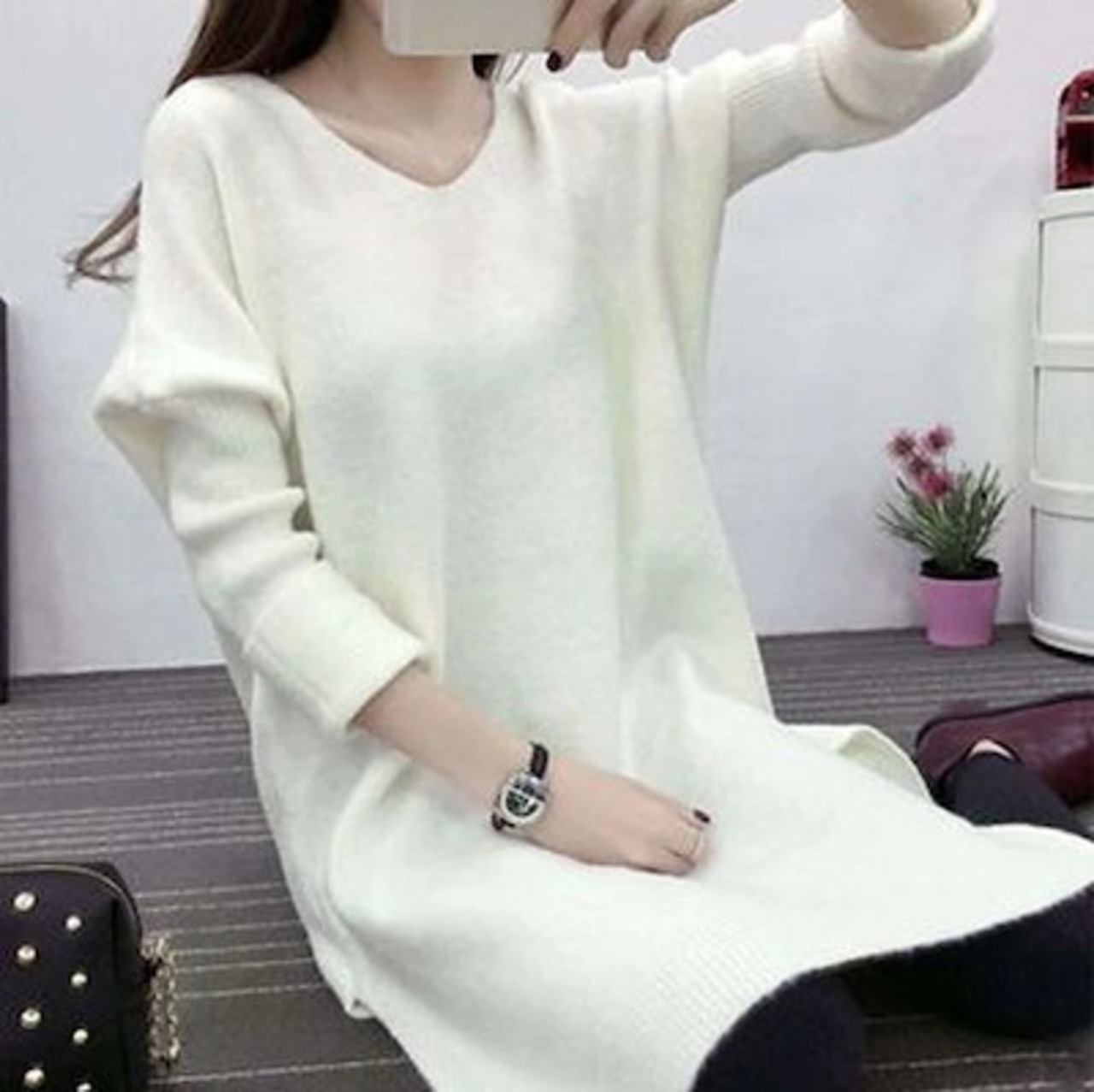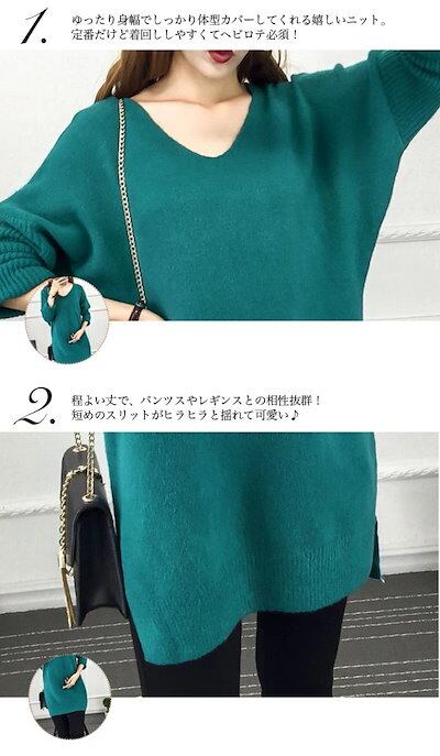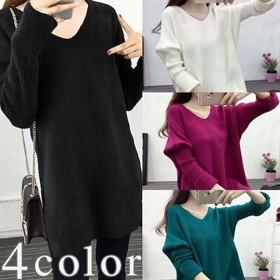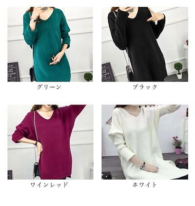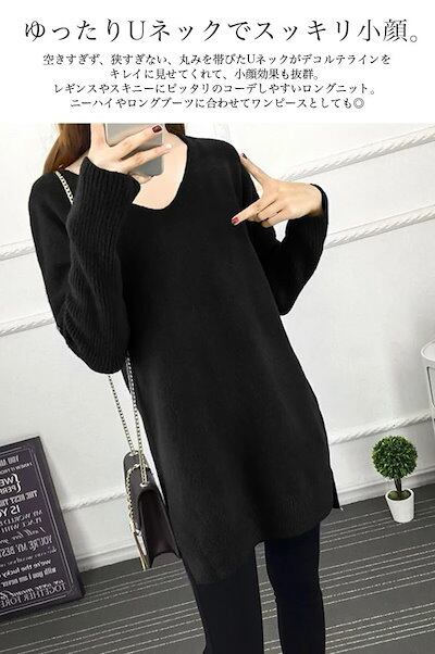 ミニワンピース 長袖 ラウンドネック レディース トップス シンプル ニット ゆったり Uネック 体型カバー チュニック ロングニット