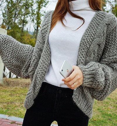 アウター もこもこ ニット 羽織り カーディガン カーディガン セーター ニット (メール便) レディース トップス 編み込み